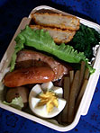 きょうのお弁当は母が用意。わたしはデザート用のグレープフルーツとゆで卵をきれいにカットしただけでした。ふくらぎの味噌漬、コロッケ、小松菜のお浸し、里芋と葺の煮物、ゆで卵、ウインナー、ゆかりおにぎり、グレープフルーツが入っております。野菜がちょっと少なかったかな。特別ステキなものでも無いので、ただの記録用でございます。