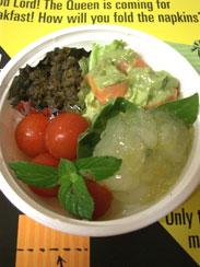 なすのペースト、通称貧乏人のキャビア。イタリアだかフランスだか、ヨーロッパの料理で、なすの種のプチプチがキャビアに似ているところから付いたネーミングだそうです。西洋版の佃煮といったところでしょうか。