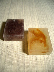 京菓子の「かも川」と同じような氷室のお菓子で、氷に見立てた砂糖の中に大納言が入っています。同じなんですけど、私はこちらの彩雲堂の食感の方がシャリっとしてて好きです。