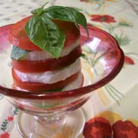 イタリア国旗と同じトレコローレが鮮やかな、ナポリ発祥のイタリアン定番のサラダですが、ここはお洒落にミルフィーユ仕立てにアレンジしてみました。手間要らずのカンタン3分クッキングですが、その味の組み合わせは絶妙です。酸味がさわやかなさっぱりとした味で、ナポリの暑い夏の疲れを癒してくれたのではないでしょうか。