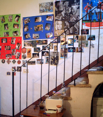 シエナの人はおとなしいですが、彼らはイタリア各地から来た学生たちで、優しくて気さくな人ばかり。折り紙をしたり、漢字で名前を書いたり、記念写真を撮ったり、あっという間に夜が過ぎていきました。別れ際には、「タエコはいつ戻ってくるの? またココに帰ってきなよ」と。短い滞在でしたが、仲間のように親しみを感じてくれて、とても嬉しく思いました。そしてきょう撮った記念写真は、キッチンに貼ってある「ヴァレロッツィ通り49番地のスーパーガール」(写真5)の写真コーナーに、殿堂入りを果たすことになりました。